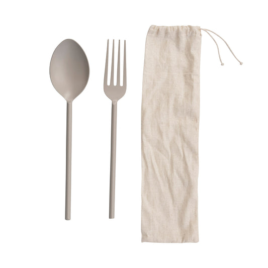 Rayan Stainless Steel Server Set, Matte Gray