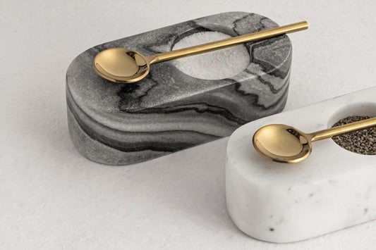 Nawal Gray Marble Salt/Pepper Cellar with Gold Spoon